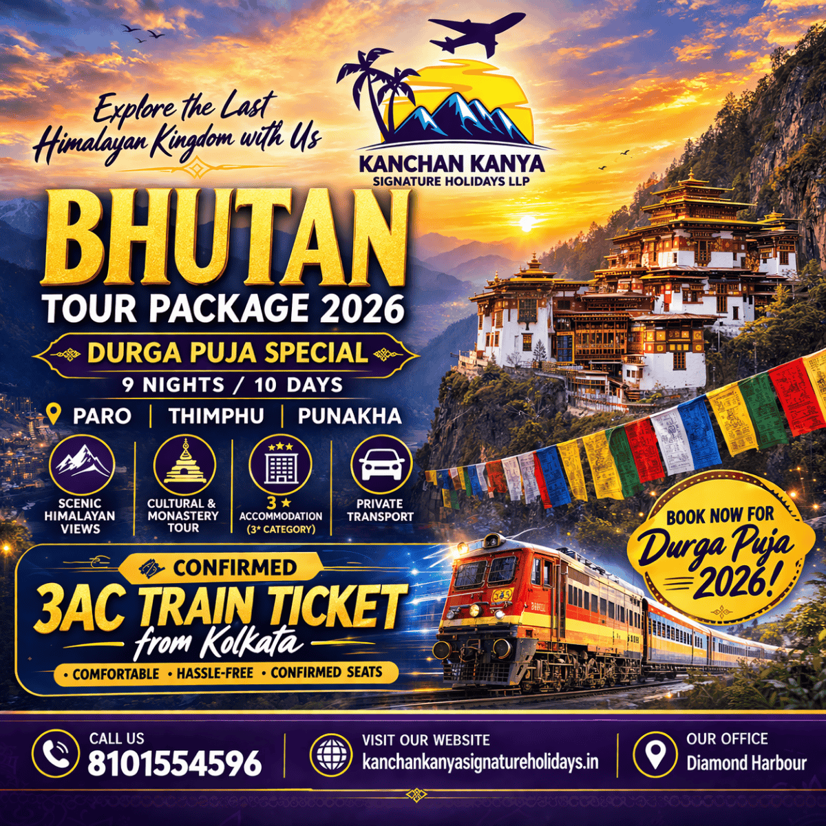 Durga Puja 2026 Special: Bhutan 9 Nights 10 Days Group Tour from Kolkata (Confirmed 3AC Train)